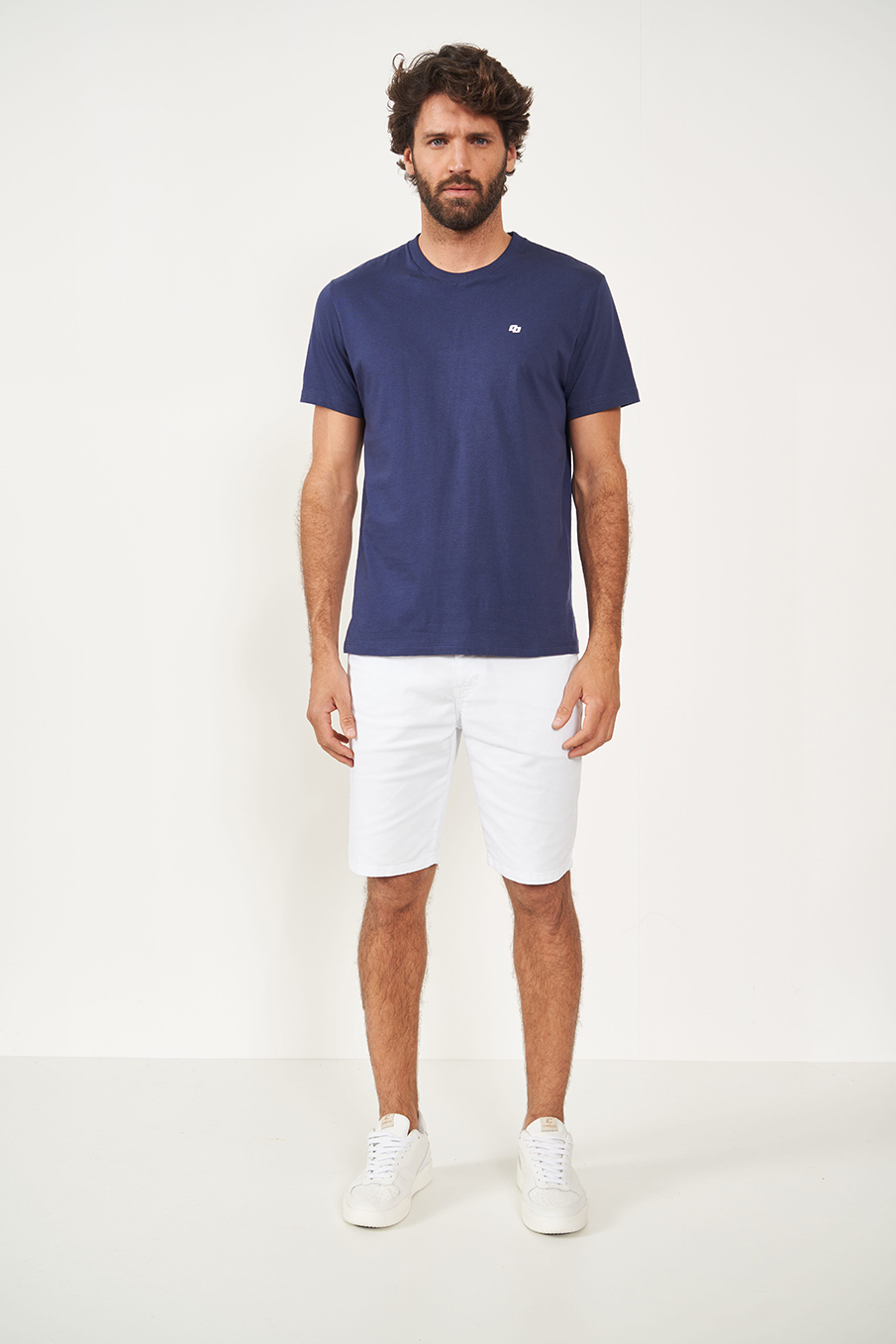 Como a Bermuda Sarja Davi oferece praticidade, você pode usar uma camiseta lisa para passear ou até mesmo trabalhar.